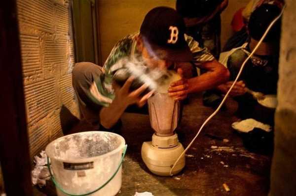 Член наркобанди змішує у блендері кокаїн, лідокаїн та кофеїн. В один кілограм кокаїну додають інші хімічні речовини, щоб одержати три кілограми суміші.