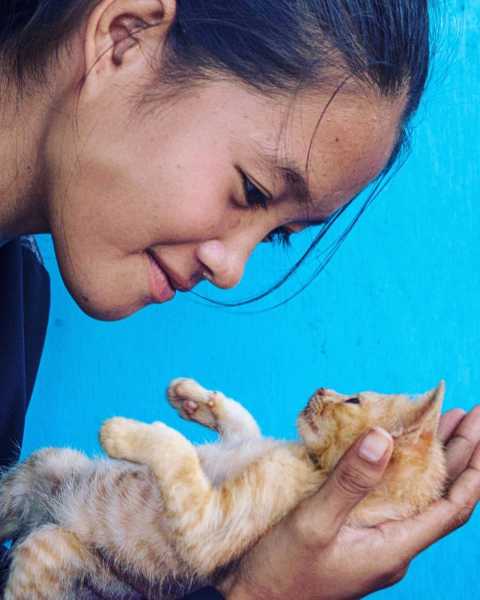 Дівчинка та кошеня з малайзійського міста Семпорна