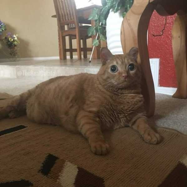 Кішці на прізвисько Потейто («Картопля») зараз уже майже п'ять років. Зіркою соціальних мереж мила тварина стала завдяки своїм очам – повірте, таке рідко побачиш. Ешлі Норілен — господиня Потейто — розповіла, що точно не знає, через що у кішки такі очі, проте запевняє, що вихованець живе повним життям — грає, добре харчується і взагалі почувається чудово, чому можна тільки порадіти. Подивіться фотографії Потейто, це дійсно дивує.