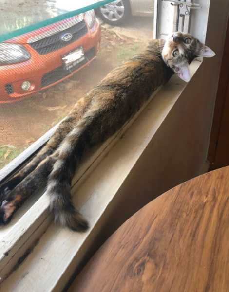 Ці котики з великим задоволенням показують, як вони можуть подовжуватися за своїм бажанням. Здається, що це неможливо, коли раптом маленька кішечка підтягуючись, начебто подвоюється в довжину, але цим створінням все під силу.