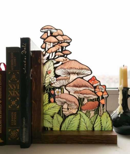 Підставка для книг з грибами із кольорового скла ручної роботи
