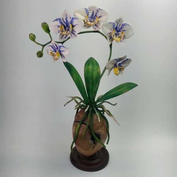 Я вирізав цю квітку орхідеї з липи та клена! Він зроблений із багатьох частин, все з'єднано шпильками, а фарба для дерева на водній основі
