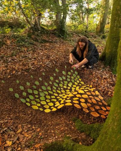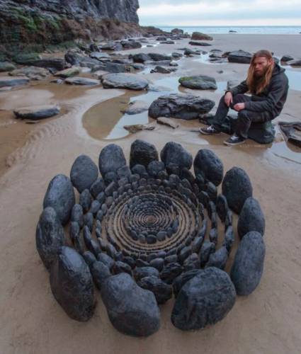 На безтурботному узбережжі Пембрукшира, що в Уельсі, художник Джон Форман (Jon Foreman) перетворює природний хаос на гармонію. Його роботи народжуються прямо на землі: з каміння, листя, черепашок і викинутих на берег морем уламків дерева, зібраних там же, де він творить.