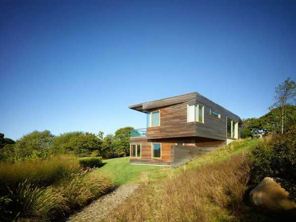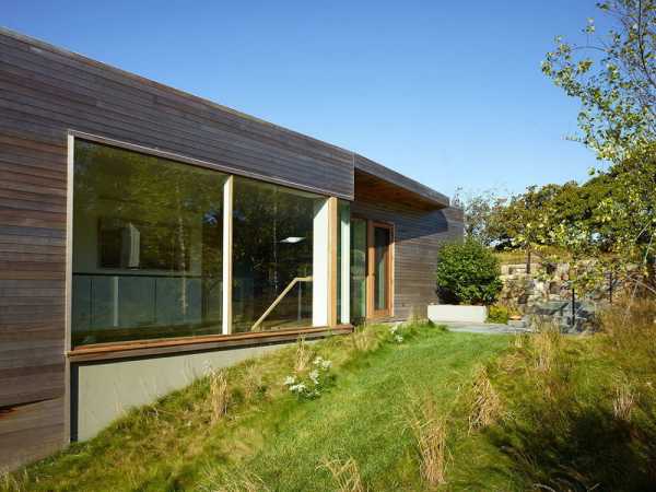 Ділянка має незвичайні регламентні обмеження: зокрема, висота будівлі може бути вищою за верхню точку забудови не більше ніж на два метри, у зв'язку з чим навіть одноповерхова частина будинку виходила частково заглибленою. З іншого боку будинок виростає на два повноцінні поверхи. Основним матеріалом при будівництві стало дерево, частина якого була використана вдруге. На плоскому даху будинку встановлені сонячні батареї та влаштований приголомшливий зелений дах. Там же зроблено видову терасу.