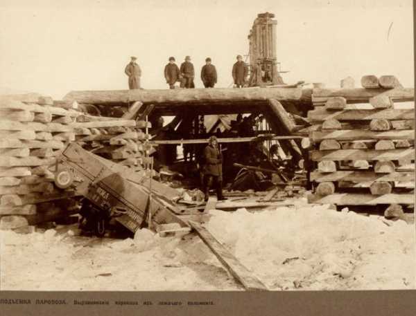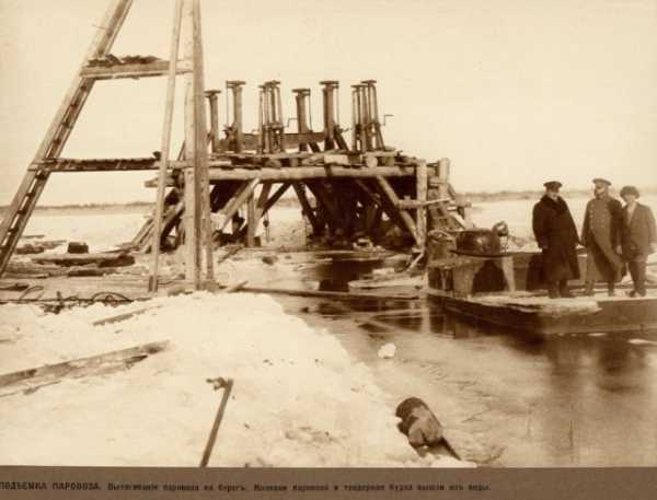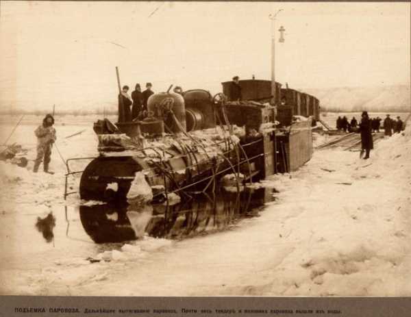 Навіть у наші дні не так просто підняти важку техніку, що затонула, з дна різних водойм, проте подібні операції проводилися і на початку минулого століття. Перед вами кадри датовані 1911 роком, на яких зображено процес вилучення затонулого паровоза з дна річки Зея. Паровоз затонув на 76-й версті біля Білогірського залізничного мосту під час зимової переправи льодом.