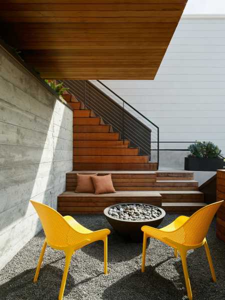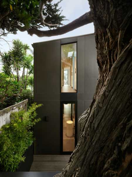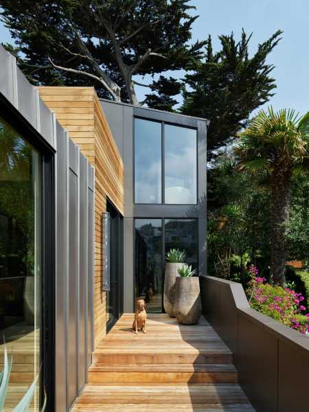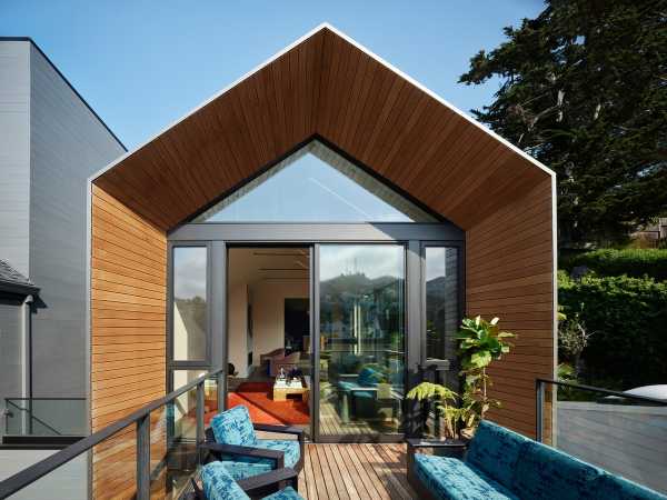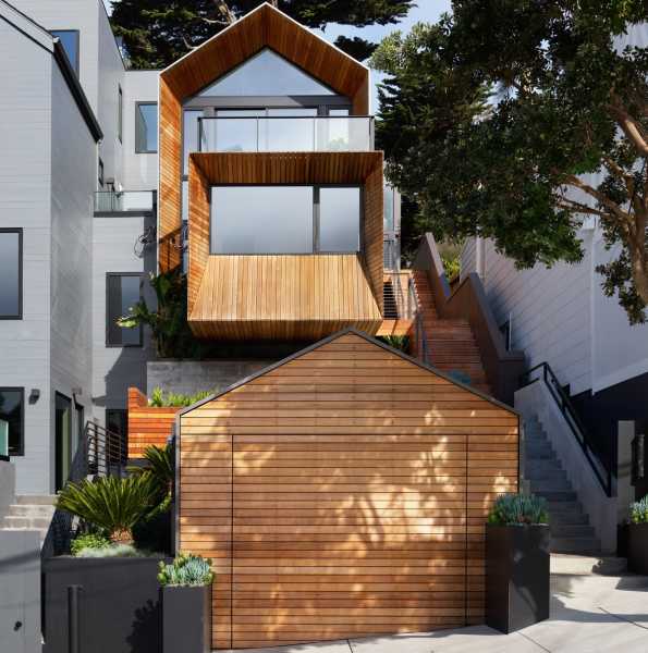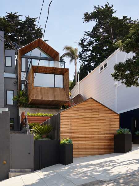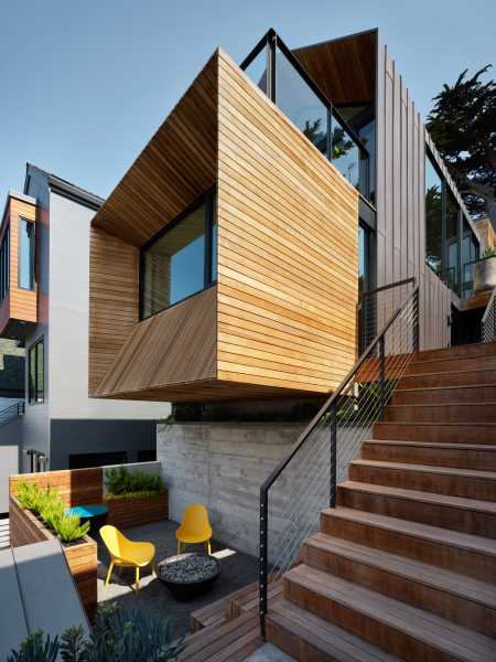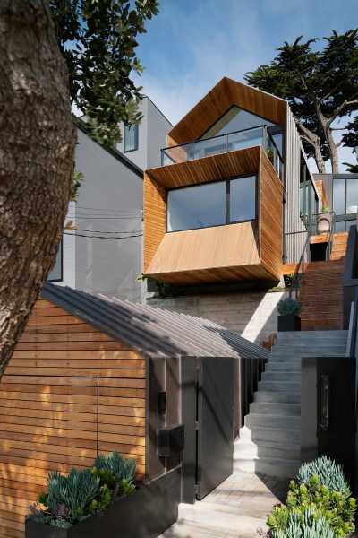 Повністю змінився зовнішній вигляд будинку. Його пряма вісь взаємодіє з формами будівлі в міру їхнього підйому до головного входу. Форми будинку ідеально поєднуються одна з одною і створюють унікальну атмосферу, яка посилюється кипарисом та палітрою матеріалів, що використовуються для оформлення фасадів, серед яких бетон, деревина кедра, метал зі стоячим фальцем та цементні панелі. Кульмінація форми проявляється у передній частині, відсилаючи до типової народної архітектури Сан-Франциско. «Перевернутий» еркер височить на 2,4 метри від фасаду, нижче якого обладнана яма для багаття на лісовій підстилці.