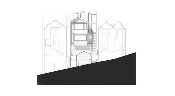 Реконструкція котеджу в Евріка-Веллі, одному з житлових районів міста Сан-Франциско, штат Каліфорнія, США, виконана у 2021 році за проектом архітектурного бюро jones | haydu. Триповерховий будинок площею 295 квадратних метрів розташовується далеко від вулиці на західному схилі крутого пагорба і має чудові краєвиди на центр міста та вежу Сютро.