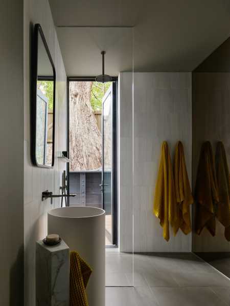 Спочатку було знесено багато внутрішніх стін, додано нові вікна від підлоги до стелі. Нові тераси, облаштовані на різних рівнях, дозволили відкрити інтер'єр та забезпечити його зв'язок із зовнішнім середовищем. На першому поверсі, що височіло над вулицею та використовувався як автономна майстерня, було додано консольну прибудову з гостьовою кімнатою, яка затіняє новий внутрішній дворик унизу. За гостьовою кімнатою спроектовано домашній офіс, а також додано сходи, що з'єднують цей рівень з рештою будинку.