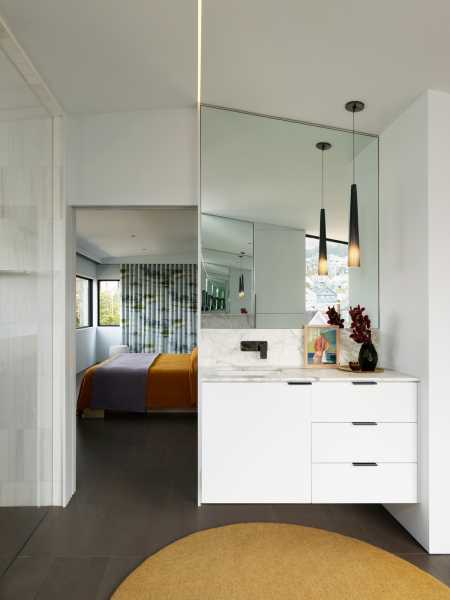 Вітальня на другому поверсі була звільнена від внутрішніх стін, а невеликі вікна замінені на скляні панелі на всю висоту приміщення під стелею. Щоб створити просторе приміщення на третьому поверсі, було піднято дах і змінено кут її нахилу. У головній ванній кімнаті в кутку зі скляними стінами була встановлена окрема ванна, яка дозволяє приємні водні процедури поєднувати з милуванням Твін Піксом, елітним житловим районом, розташованим на відстані на двох крутих схилах.