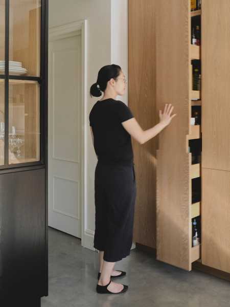 Виготовлена на замовлення кухня з дуба та порцеляни, зроблена на замовлення сталева вітрина, дубова балюстрада ручної роботи та меблі для ванної кімнати втілюють у собі суворий підхід студії до створення просторів, що відповідають високим екологічним стандартам. RISE Design Studio допомогла клієнтам встановити фотоелектричні сонячні панелі на дах, систему рекуперації тепла з механічною вентиляцією, сталеве скління з термічним руйнуванням та герметичність будинку.