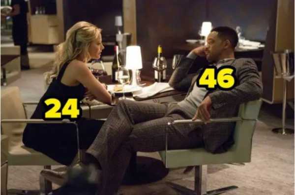 Шон Коннері був на 39 років старший за Кетрін Зети-Джонс, коли вони грали любовну пару у фільмі «Пастка». Зрозуміло, що у відносинах двох дорослих людей вік — це просто число, але досить дивно, що Голлівуд, схоже, має алергію на пари одного віку. Ось кілька прикладів різниці у віці між акторами, які грають екранні пари.