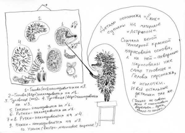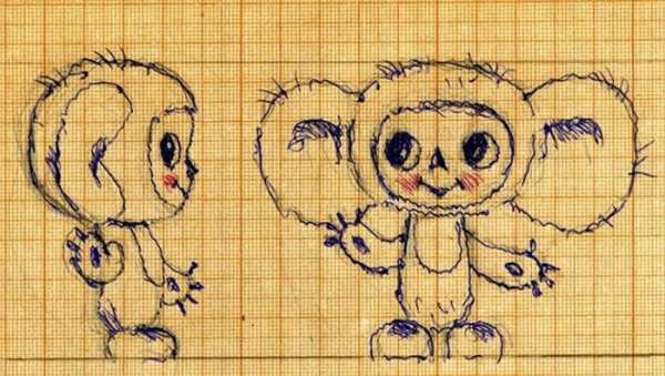 Почав я малювати вуха Чебурашку: спочатку нагорі, потім вони поступово стали сповзати і збільшуватися. До мене регулярно приходив Качанов, я показував нариси, ми їх обговорювали, сперечалися, він висловлював свої побажання, я перемальовував. Завдяки таким спільним зусиллям і з'явився остаточний ескіз. На ньому, щоправда, Чебурашка ще має ведмежий хвостик, який потім сильно зменшили. І ніжки спочатку були довшими, але Норштейн порадив зробити їх маленькими, як зараз. Після створення ескізу у кольорі я зробив креслення, а майстри-лялькарі виготовили Чебурашку, і він зажив своїм життям»