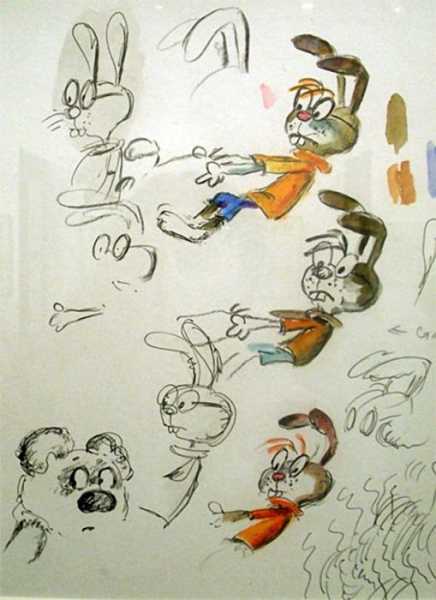 «Заєць у мене одразу вийшов, — розповідав В. Котеночкін, — із блакитними очками, рожевими щічками, взагалі дуже позитивний»