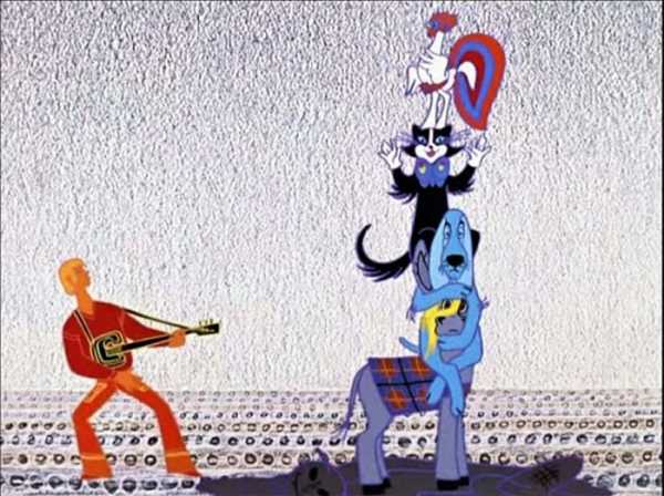 Кудлатий хлопець з гітарою за спиною, у клешених штанах і сорочці навипуск і маленький, але хитрий капосник. Вовк та Заєць. Найкращий мультиплікаційний дует за всю історію «Союзмультфільму»