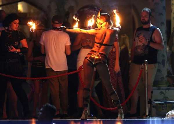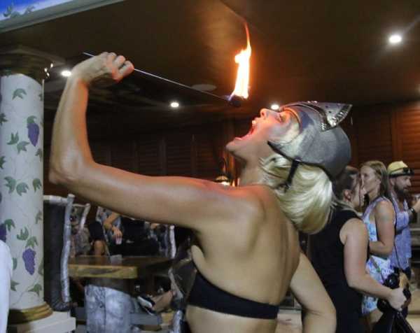 Чого на тусовці було вдосталь так це напівголих панянок різних кольорів і розмірів. Одні дихали вогнем, інших підвішували пов'язаними на гаках для розваги натовпу, третіх вимочували в басейні та заливали вином для приємнішого вживання.
