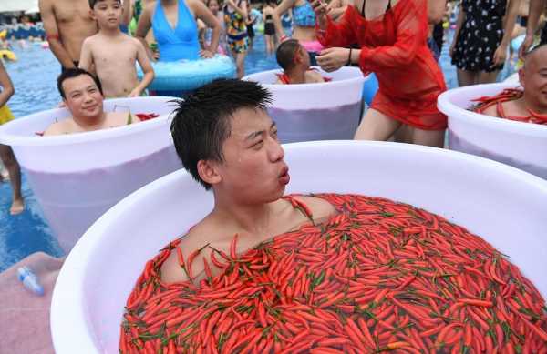 Під час конкурсу у регіоні встановилася 40-градусна спека. Багато громадян намагалися охолонути, занурившись у ємності з водою та перчиком.