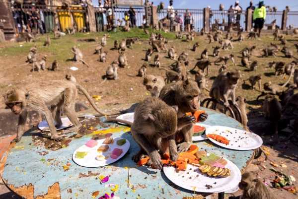Цього року на фестивалі «Шведський стіл для мавп» близько 1000 голодних макак залізли на столи та крісла, завалені фруктами, біля 800-річного храму Пра-Пранг Сем Йод у місті.