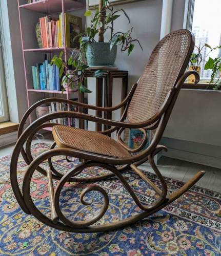 11. «Крісло-гойдалка з гнутого дерева. Публікую, щоб нагадати собі, що чудові знахідки у секонд-хенді трапляються»
