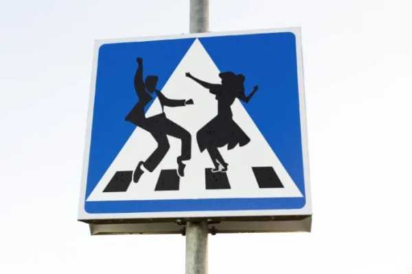 У шведському Напаранда пішохідні дорожні знаки перетворилися на арт-об'єкти. На них зображені рок-н-рол, що танцюють, виконують акорди рок-гітаристи і пританцьовують джентльмени. Ці незвичайні рішення пожвавлюють атмосферу історичного центру міста та залучають туристів. Можливо, ідея народилася під впливом «Міністерства дурних ход» від «Монті Пайтон».