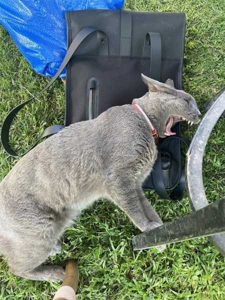 «Сусідський кіт прийшов полежати на моєму рюкзаку»