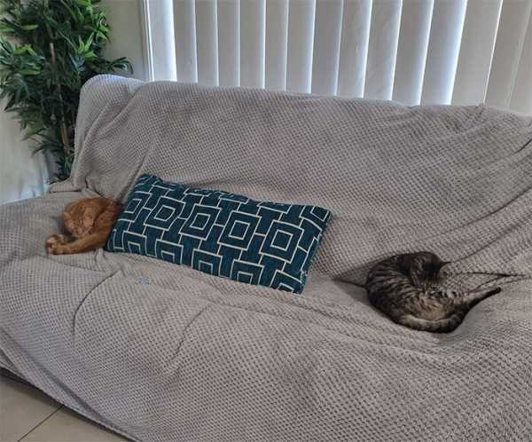«Через мої котячі двері проникли два сусідські коти, щоб солодко поспати на дивані»