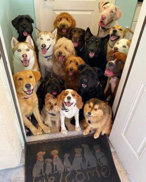 Усі господарі знають, як непросто змусити кількох собак спокійно сидіти в одному місці для банальної фотографії. Вони завжди так і норовлять кудись якнайшвидше втекти! А якщо собак – 20 і більше? Центру для денного утримання та навчання собак Woofpack Daycare це вдається чудовим чином, і ось кілька прикладів.