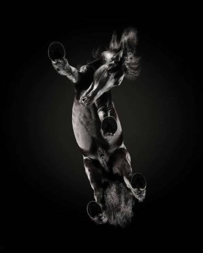 Для зйомки дрібних вихованців фотограф використовував прості скляні столи. Але коли справа дійшла до коней, довелося вдатися до радикальних заходів: вирити двометрову яму і встановити посилене скло, здатне витримати вагу тварини. Результат вражає: кадри вийшли кристально чіткими, кумедними та водночас поетичними.