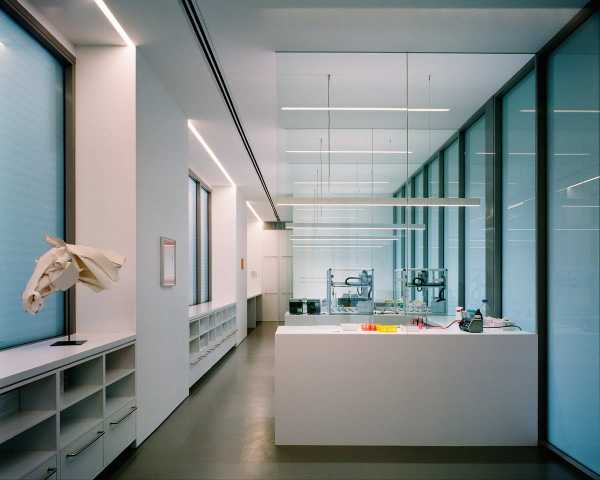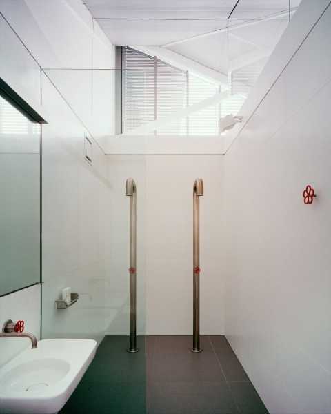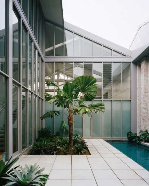 «Нова робота доповнює, але чітко відрізняється від оригінальної тканини завдяки суворому застосуванню концепції утримання, переробки та посилення первісної форми, – сказали у студії. — Серія вишуканих та елегантних нових елементів контрастує з оригіналом та доповнює його, без сентиментального чи ностальгічного переосмислення естетики складу». Площі цегляної стіни, що збереглася, тепер обрамлені новими металевими елементами, які відображають ферми оригінального складу, створюючи яскраві, відкриті житлові простори, які дивляться вниз у невеликий внутрішній двір. Перегородки в цих житлових приміщеннях усі зупиняються біля основ ферм, перетворюючи дах у величезний відкритий простір, завдяки чому світло проникає на всю площу даху та ефективно циркулює повітря. Верхній рівень розділений при строгому вирівнюванні з існуючими фермами, а нижній пояс ферми використовується як горизонтальна система координат. Усі суцільні стіни зупиняються на цьому рівні, а над ними встановлено прозоре скління. На півночі, на верхньому рівні, було видалено ділянку даху, щоб створити засаджений майданчик відкритої тераси, що розширює житловий простір між цим сучасним фронтоном та цегляною стіною суміжної конструкції. Рухливі скляні жалюзі, що оточують внутрішній двір, забезпечують природну вентиляцію, а також захист від сонця та служать для створення індустріального відчуття у нових приміщеннях. На оригінальному цегляному фасаді ці скляні жалюзі разом із напівпрозорими вікнами забезпечують конфіденційність для лабораторного простору та дають натяк на сучасне перетворення, що відбулося всередині.