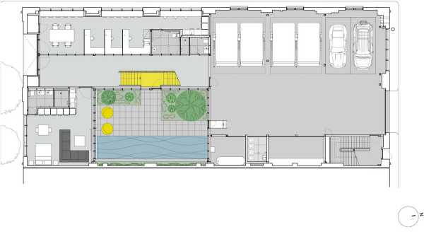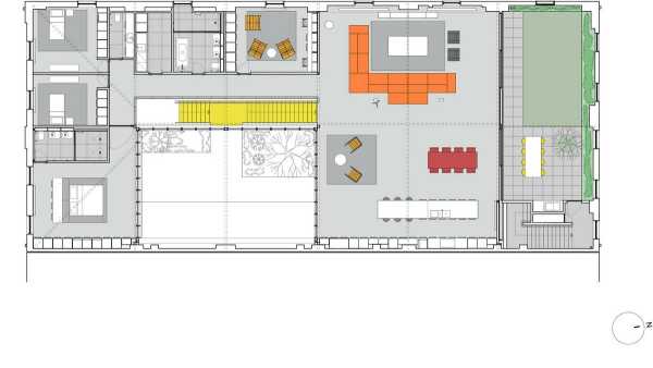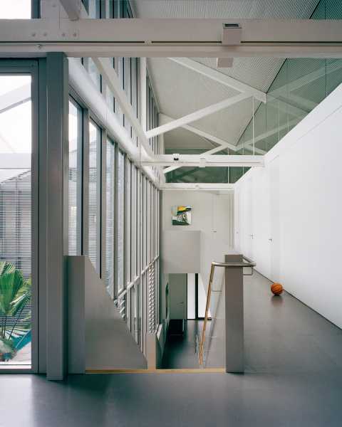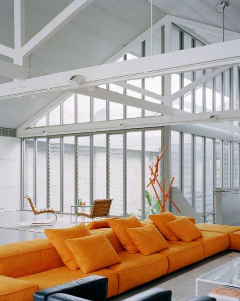 Було зроблено сильний акцент підтримки індустріального стилю перетворення. Власники попросили, щоб у нових інтер'єрах не використовувалося ні дерев'яне, ні мармурове, ні чорне оздоблення. Великі дерев'яні кроквяні ферми оригінальної конструкції складів залишені відкритими та забарвлені у білий колір, а навколо них виконані нові доповнення. Програма розділена по горизонталі на два рівні, у верхній частині розташовані житлові приміщення, а на першому поверсі — гараж, лабораторні та допоміжні приміщення та дворик.