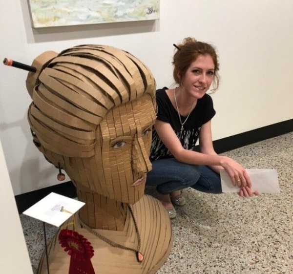Адже схожа! Дівчина і її гігантський бюст з картону.
