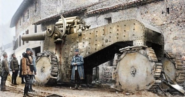 Гігантська італійська гаубиця, захоплена австро-угорцями у листопаді 1917 року.