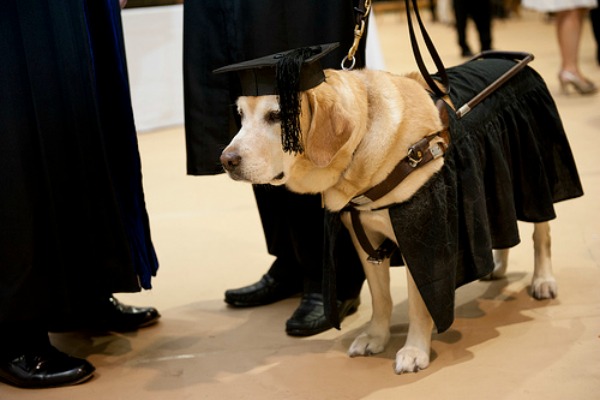 Ми впевнені в тому, що службовий пес Самсон не досягав успіху ні в літературі, ні в математиці, але при цьому він закінчив Університет Оклахоми. Тут його готували стати професійним службовим собакою. Після двох років роботи собакою-терапевтом він отримав почесний ступінь разом із рештою трьомастами випускниками вишу. Так, він теж був у шапочці та мантії, тиснув руки викладачам і отримав справжній диплом на сцені.