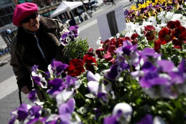 Жінка вибирає квіти на фермерському ринку на Юніон-сквер у Нью-Йорку, 20 березня 2017 року.