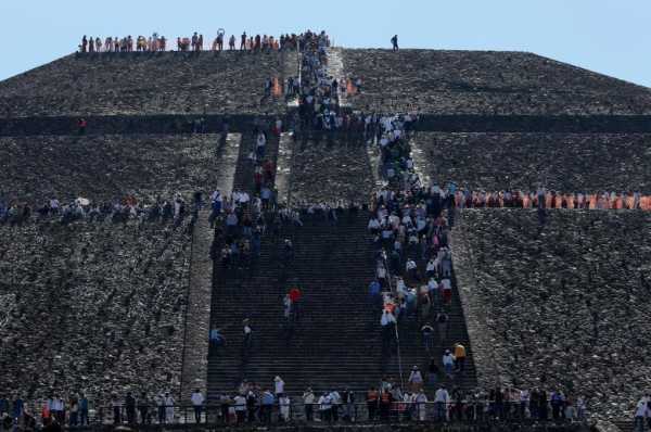 Люди сходять на Піраміду Сонця під час святкування дня весняного рівнодення у стародавньому місті Теотіуакан у Мексиці, 20 березня 2017 року.