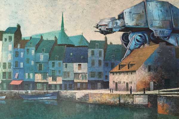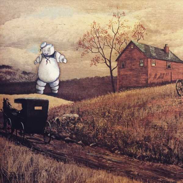У той час, як більшість з нас проходить повз комісійні магазини та барахолки, художник Dave Pollot бачить у них величезні можливості для творчості. Він скуповує ідилічні картини, найчастіше написані в 18-19 століттях і домальовує на них предмети або персонажів, популярні в сучасній культурі – героїв “Зоряних війн”, “Вартових Галактики” або “Мисливців за привидами”.
