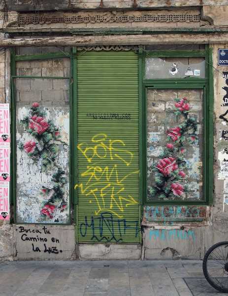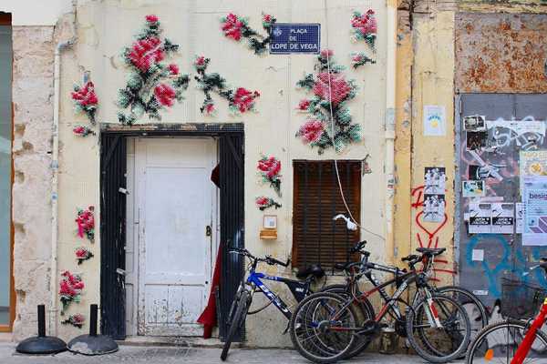 Ракель Родріго (Raquel Rodrigo) – іспанська художниця та декоратор, яка додає свої власні барвисті штрихи, прикрашаючи іспанські вулиці вишитими хрестиком квітковими візерунками.