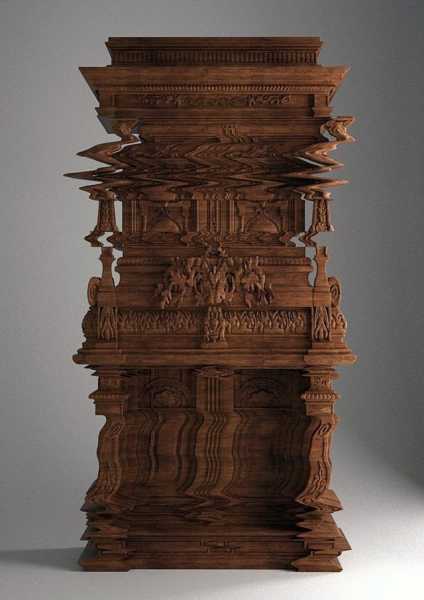 Дивовижна дерев'яна шафа Ферруччо Лавіані. Спроектований так, що виглядає як цифровий глюк