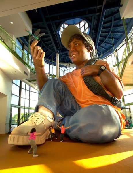Гігантська статуя хлопчика на ім'я Едді, всередину якої діти можуть забратися до дитячого музею EdVenture, США