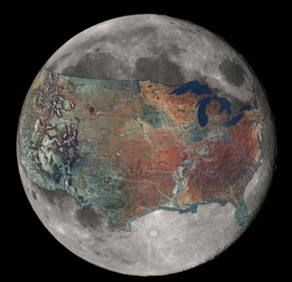 Розмір Місяця проти розміром США.