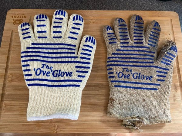 Абсолютно нова рукавичка та рукавичка, якій сім років.
