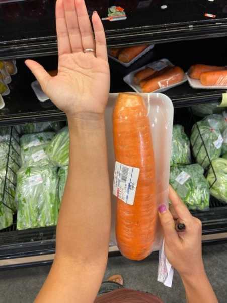 Величезна морква в порівнянні з рукою людини.