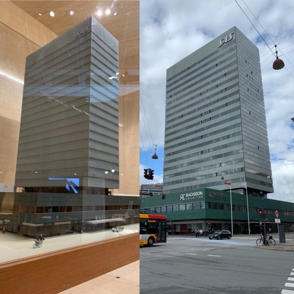 Модель будівлі і те, як вона виглядає насправді.