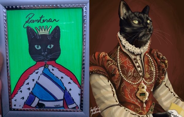 Я зробила портрети своєї кішки: 2 роки тому та 5 хвилин тому.