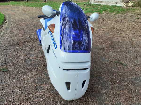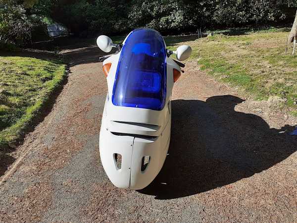 Мотоцикл відрізняється масивною передньою частиною з величезним склом синього кольору і клювоподібним переднім звисом, що практично повністю закриває переднє колесо.