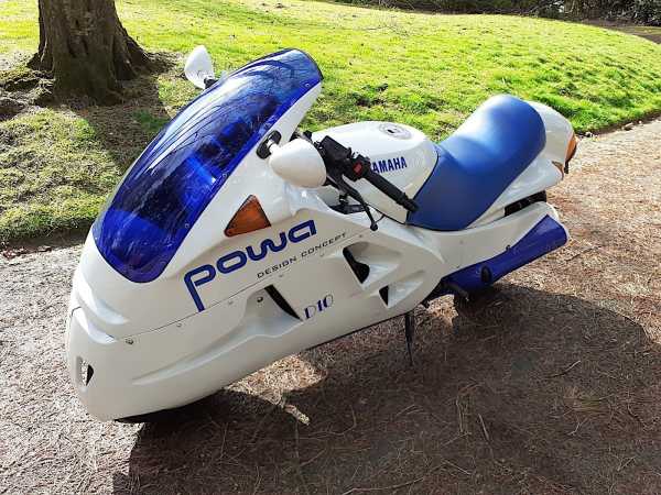 Це Yamaha Moko Powa D10, який іноді називають Powa D10. Мотоцикл заснований на шасі Yamaha FZ750 та отримав індивідуальний аеродинамічний комплект, розроблений Гансом Вальтером.