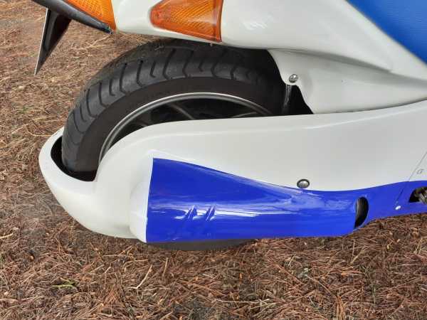 Кузовні панелі немов опоясували весь мотоцикл, з'єднуючись навіть за заднім колесом. Вихлопні труби також були приховані всередині, але зовні виділялися елементами синього кольору, що йдуть паралельно.
