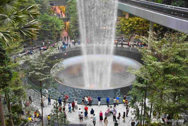 Jewel Changi Airport – це п'ятиповерховий торговий комплекс та унікальний парк з 2500 деревами та 100 000 рослинами з усього світу, заховані під скляним куполом. Розташований у центрі купола 40-метровий водоспад The Rain Vortex – найвищий у світі (у закритих приміщеннях).