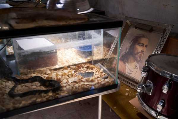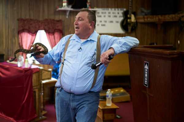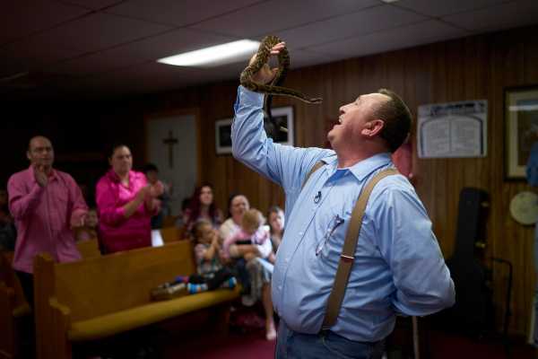 У нас є унікальна можливість заглянути всередину «зміїної церкви» у Сквайрі, Західна Віргінія, в якій пастор Кріс Вулфорд проводить проповіді з отруйною змією в руках і п'є розбавлену водою отруту. Його віра непохитна, незважаючи на те, що батько та брат Кріса загинули від укусу змій під час аналогічних проповідей. Подібна віра практикується в Аппалачських горах Кентуккі, Вірджинії та Західної Вірджинії і ґрунтується на буквальному тлумаченні уривка з Біблії Марка 16:18, в якому говориться: «вони візьмуть змій; і якщо вони вип'ють щось смертоносне, це не зашкодить їм; вони покладуть руки на хворих, і вони одужають.