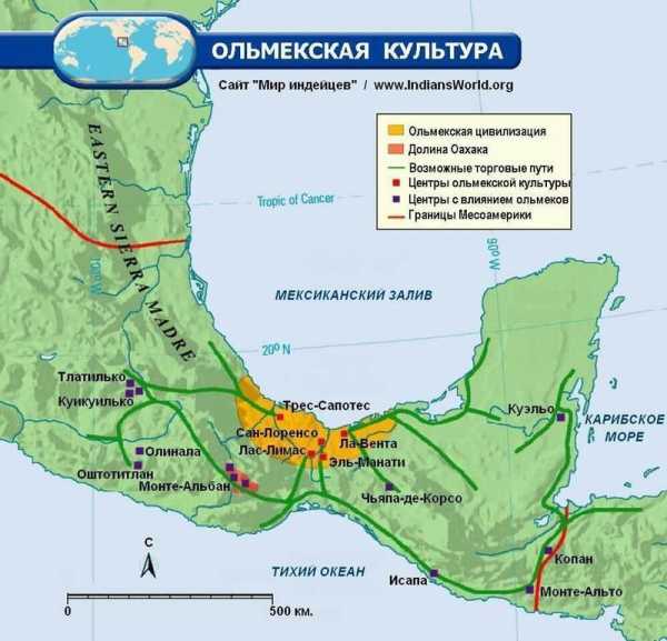 Згідно з дослідженнями, цивілізація ольмеків є найдавнішою біля Мезоамерики, а період її розквіту посідає 1500-400 роки до нашої ери. Надалі цивілізація ольмеків зникла, залишивши у спадок піраміди, водогін, писемність, яку досі не можуть розшифрувати, та величезні скульптури у вигляді голів. Передбачається, що свій календар давні майя запозичили у ольмеків, із якими жили по сусідству. У хроніках ацтеків також згадуються ольмеки, що свідчить про контакти цих культур між собою.