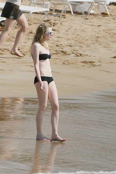 Актриса завжди відрізнялася аристократично блідою шкірою — ось і тепер ми дізнаємося про типову Кірстен на одному з Гавайських пляжів і захоплюємося її природністю. Складається враження, що навіть самому спекотному сонцю не під силу «розфарбувати» цю блідість, особливо якщо Данст використовувала 50-й фактор захисту.